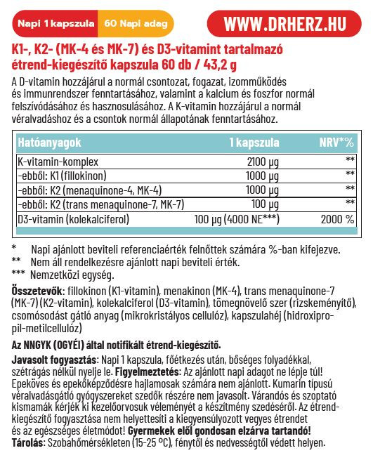 A K-Komplex + D3-vitamin egy komplex összetételű étrend-kiegészítő, amely K1-vitamint, valamint kétféle K2-vitamint (MK-4 és MK-7), továbbá magas hatóanyag-tartalmú D3-vitamint tartalmaz. A készítmény célja a csontok, az immunrendszer és a szív- és érrendszer egészségének támogatása.