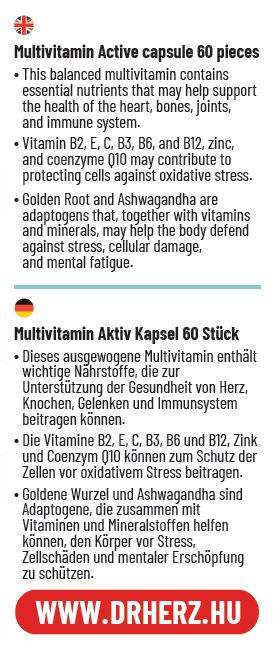 A Multivitamin Aktív egy komplex összetételű étrend-kiegészítő, amely vitaminok, ásványi anyagok és növényi kivonatok kombinációjával támogatja a mindennapi vitalitást. A készítmény hozzájárul az immunrendszer normál működéséhez, a fáradtság és kifáradás csökkentéséhez, valamint a szervezet energia-anyagcseréjének támogatásához. A benne található adaptogén gyógynövény-kivonatok és koenzim Q10 segítik a fizikai és szellemi teljesítőképesség fenntartását az aktív életmódot élők számára.