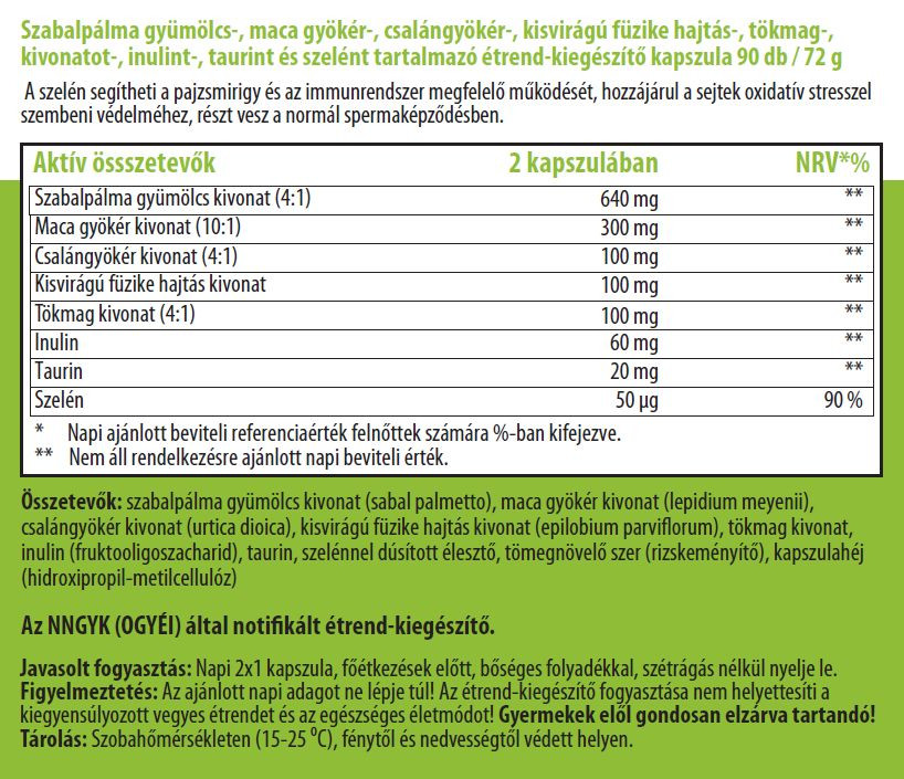 A szabalpálma kivonatát hagyományosan használják a jóindulatú prosztata megnagyobbodás (BPH) kezelésére. A BPH a prosztata megnagyobbodása, amely a korral járó hormonális változásokhoz kapcsolódik. A szabalpálma kivonatnak úgy vélik, hogy gátolja az 5-alfa-reduktáz enzimet, amely a tesztoszteron átalakulásáért felelős a dihidrotesztoszteronná, ami a prosztata megnagyobbodásához vezethet.